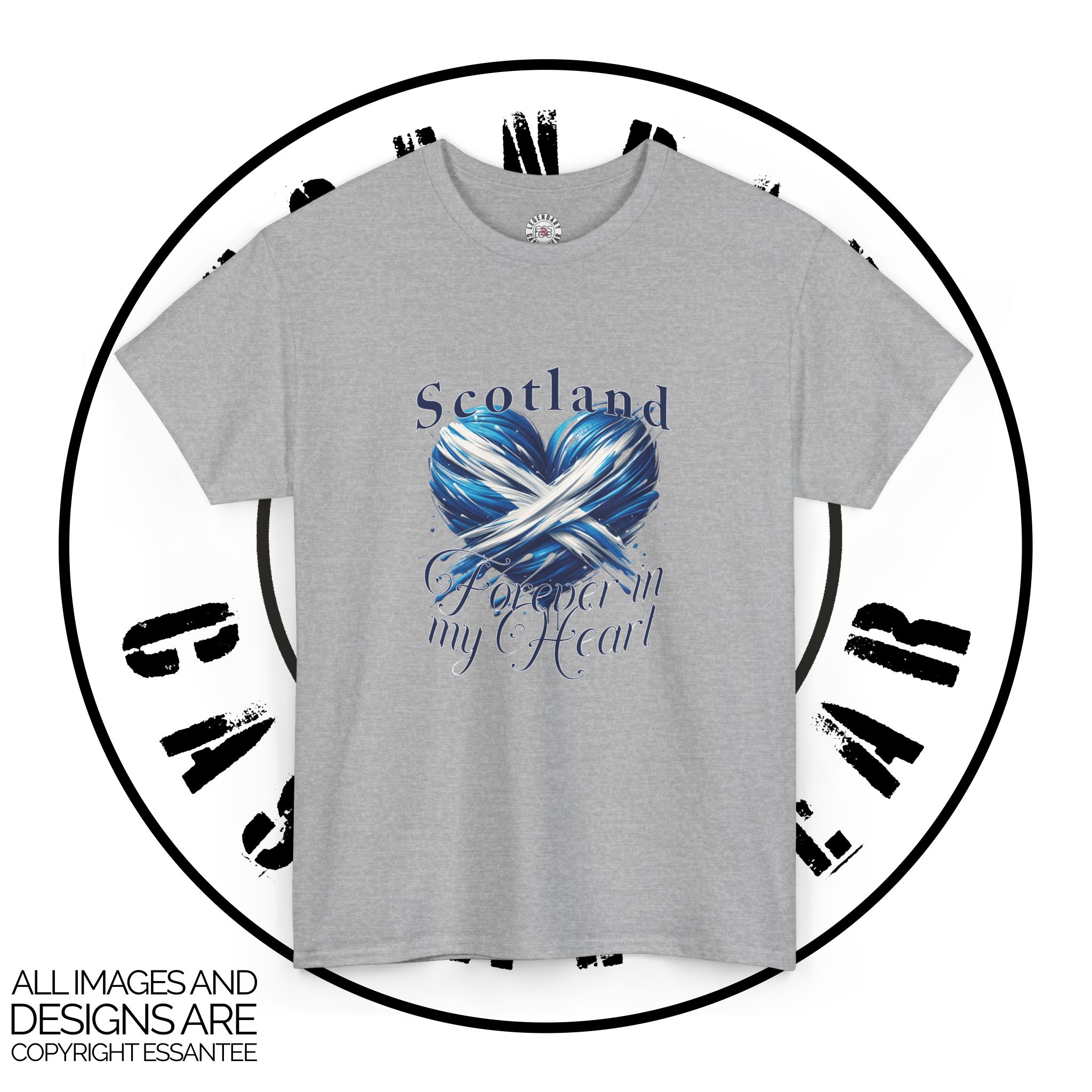 Show your love for Scotland and anything Scottish with this exclusive T-shirt designed in Scotland. The design ‘Scotland Forever in my Heart’ evokes a sense of patriotism and nostalgia, perfect for those who appreciate Scottish culture. This unisex t-shirt is ideal for adults looking to celebrate Scottish heritage during festivals, parades, or everyday wear.